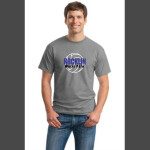 T-shirt with front chest logo. 6.1-ounce, 100% cotton (preshrunk jersey knit) Seamless double-needle 7/8" collar Double-needle sleeves and hem Taped neck and shoulders cotton/poly. Sports Grey 90/10 cotton/poly.