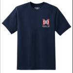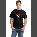 Wave Division logo . Available in youth, men's and ladies sizing. Name and number can be added on the back for an additional fee. 6-ounce, 100% cotton (preshrunk) Seamless double-needle collar Double-needle sleeves and hem Taped neck and shoulders Sports Grey 90/10 cotton/poly.