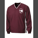 Pullover with Embroidered Logo Cool, windy days are no match for this soft wind shirt. With tipping on the collar and at the gussets, it boasts simple lines, a quiet hand and true team-oriented style. 100% polyester Jersey lining with mesh insets at gussets for added breathability Rib knit v-neck collar Raglan sleeves Articulated elbows for greater mobility Half elastic, half self-fabric cuffs for comfort Tipping on the collar and at gussets Left side seam zipper for easy on/off Side pockets Drawcord hem with toggle