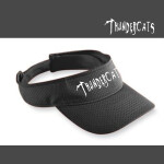 Mesh Visor with Thundercats embroidered on it. 100% polyester athletic mesh with tricot backing * Three panels * Sweatband folds down for easy embellishment * Pre-curved bill * Hook and loop fastener.