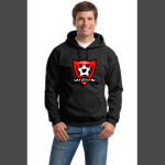 Gildan Hoodie with Wave Division Logo. Available in youth and adult sizes. Name and Number can be added on the back for an additional fee. 8-ounce, 50/50 cotton/poly; no-pill Air Jet Yarn Double-needle stitching Double-lined hood with dyed-to-match drawcord adult only Set-in sleeves Rib knit cuffs and waistband with spandex Front pouch pocket